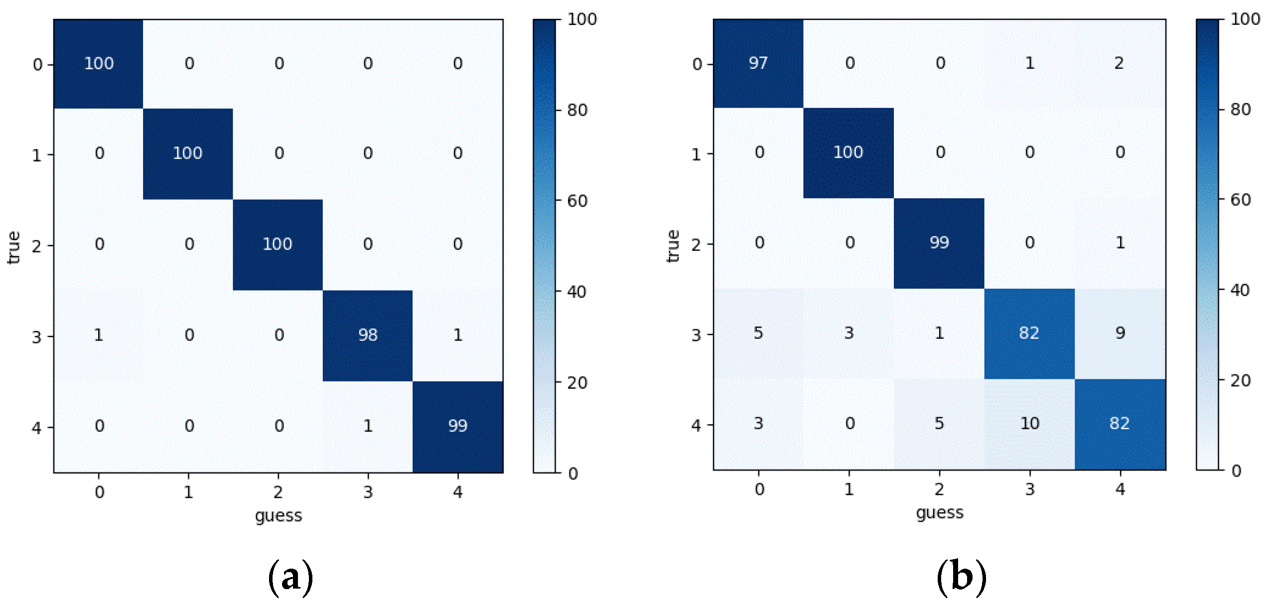 This trained model was then used to identify normal and crack fault data under a 10 Nm load at 60 RPM. To ensure the data length used for identification remained the same as at 600 RPM the sampling frequency for the 60 RPM propagation error data was changed to 1000 Hz, and the sampling frequency for the vibration acceleration signal was changed to 1024 Hz.