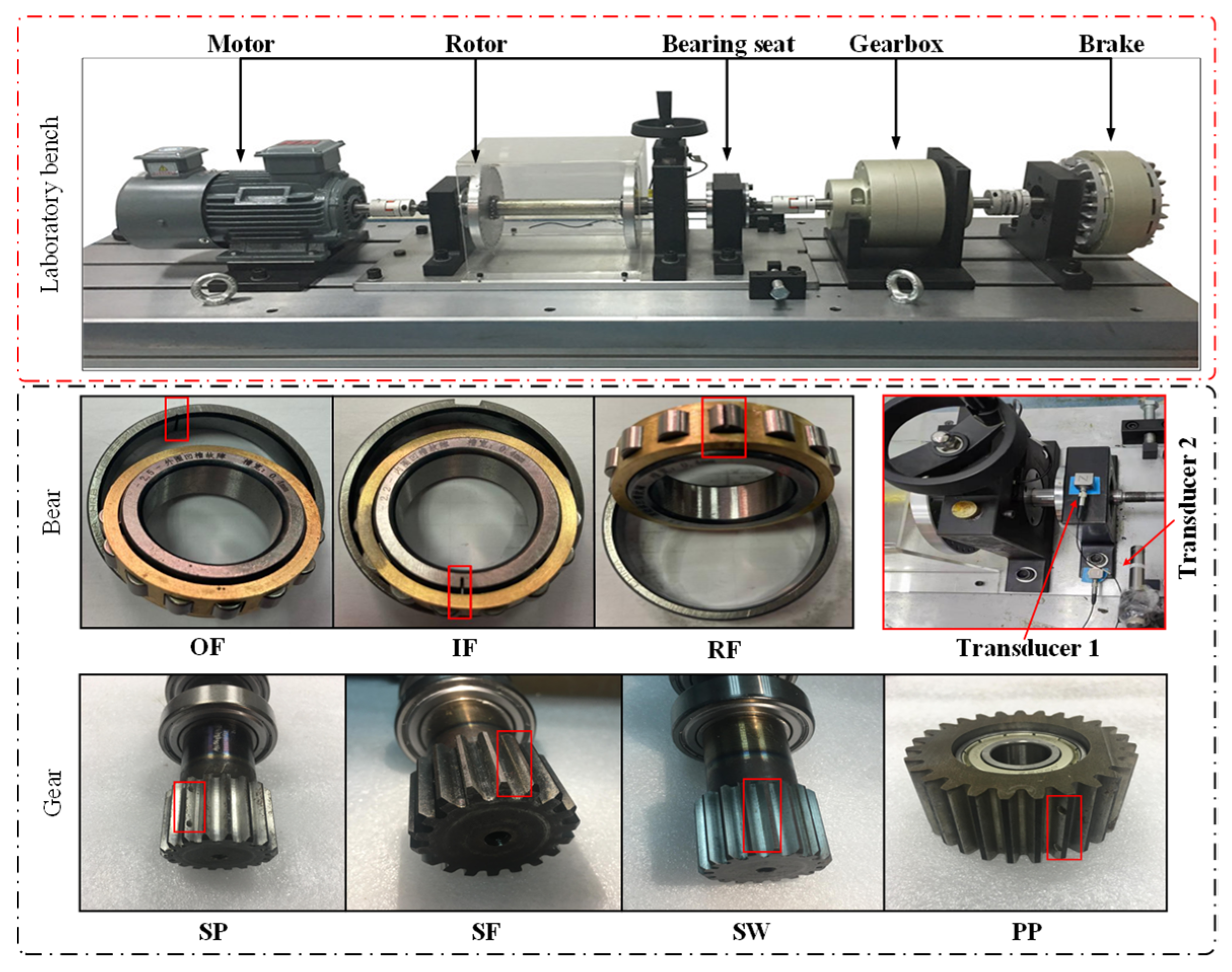 - Xu, X.; Ou, X.; Ge, L.; Qiao, Z.; Shi, P. Simulated Data-Assisted Fault Diagnosis Framework with Dual-Path Feature Fusion for Rolling Element Bearings under Incomplete Data. IEEE Trans. Instrum. Meas. 2025, 74, 3542617. [Google Scholar] [CrossRef]