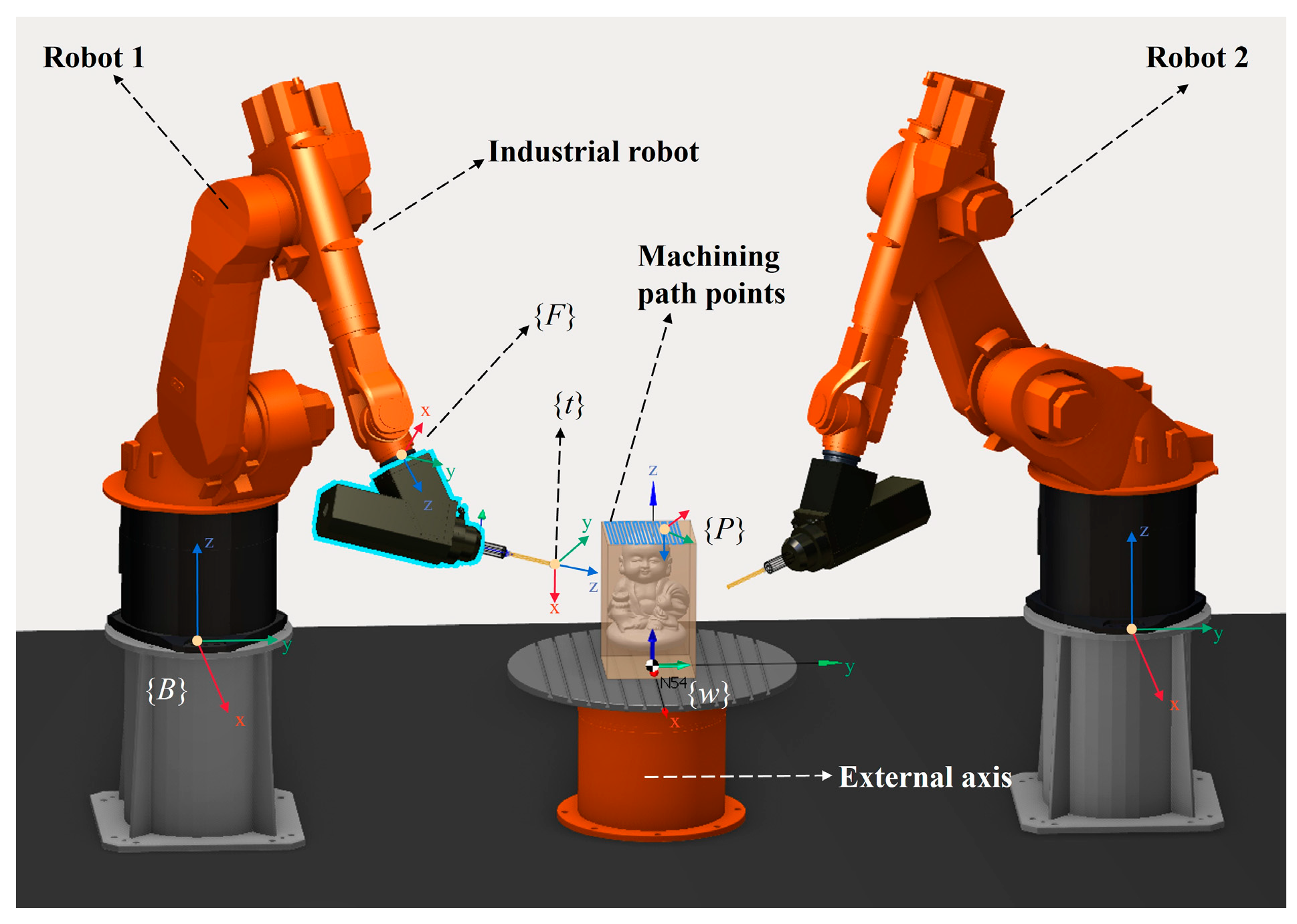 2.1. Description of the Dual-Robot Carving System