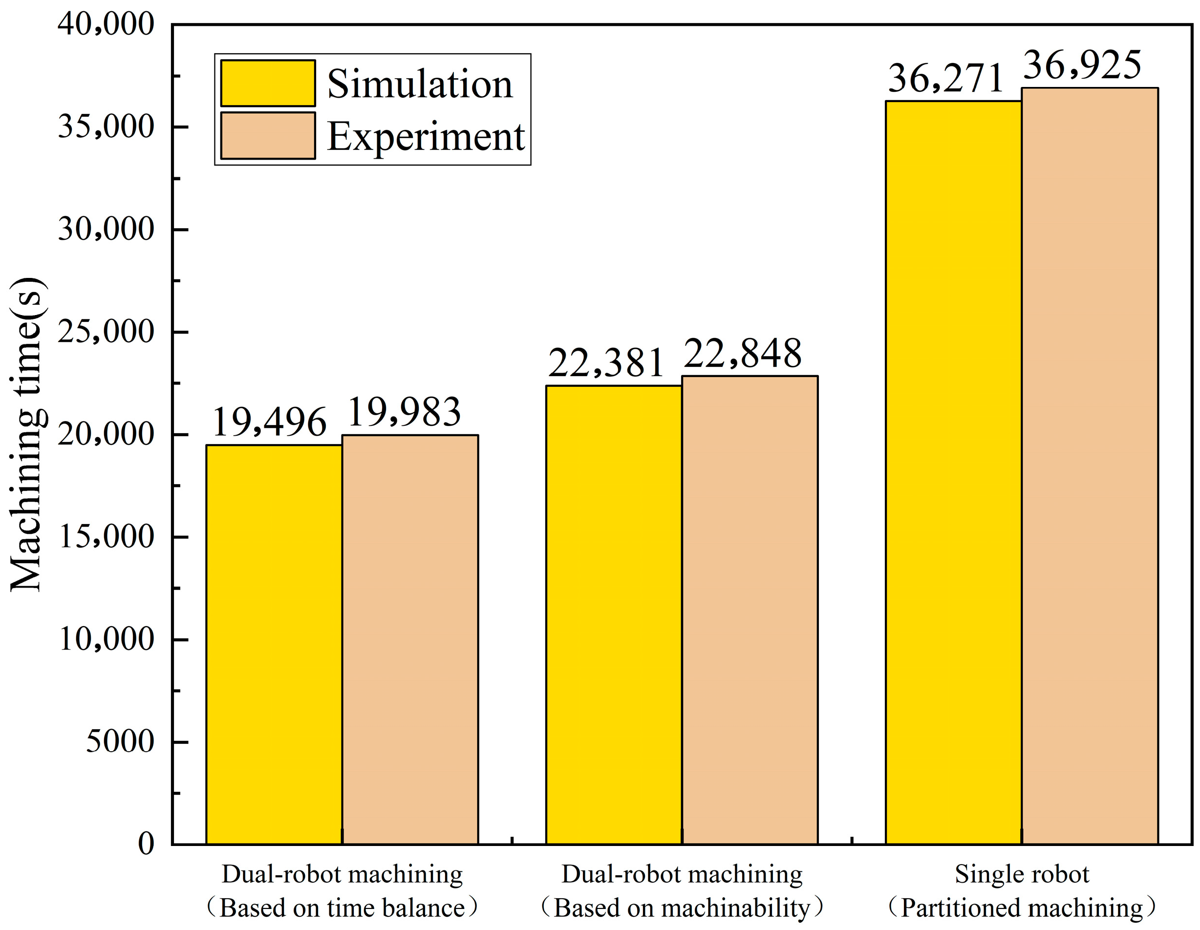 - Considering the machining time balancing of dual robots at each workstation can significantly improve the efficiency of stone carving. The effectiveness of this method is validated through both simulation and physical experiments. Compared with the task allocation method without time balancing and the traditional single-robot partitioned machining approach, experimental results show efficiency improvements of 14.33% and 84.78%, respectively.