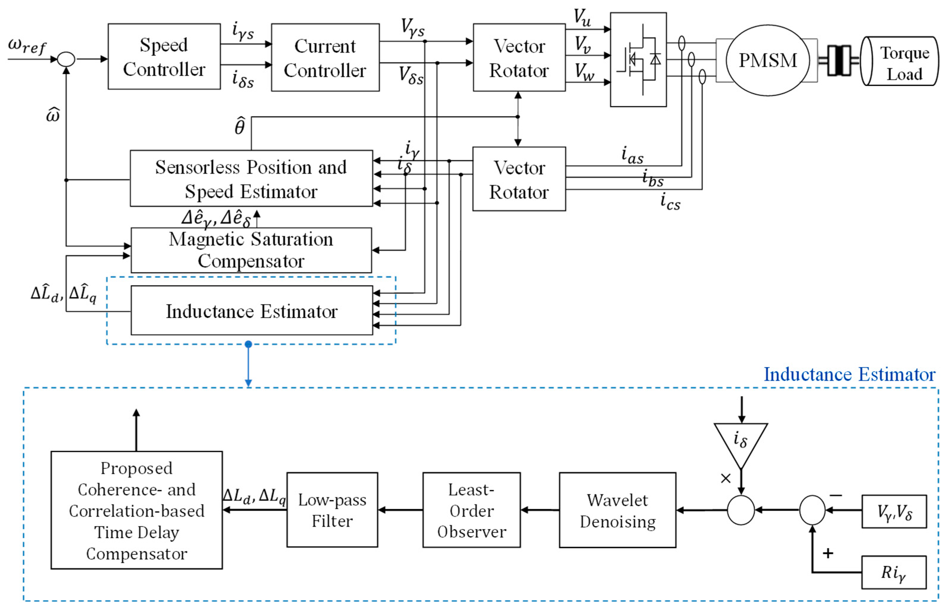 Chicago/Turabian StylePark, Gwangmin, and Junhyung Bae. 2025. "Real-Time Inductance Estimation of Sensorless PMSM Drive System Using Wavelet Denoising and Least-Order Observer with Time-Delay Compensation" Machines 13, no. 12: 1102. https://doi.org/10.3390/machines13121102