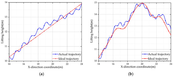 Lifting height of the payload under different trajectories. (a) Lifting height of the payload under straight trajectory. (b) Lifting height of the payload under curve trajectory.