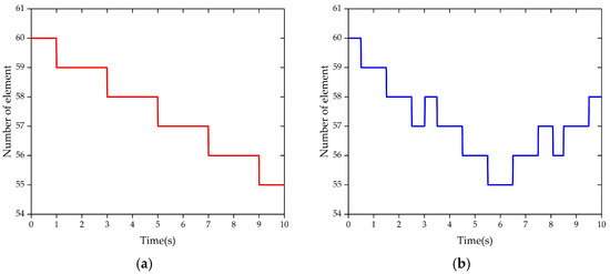 The numbers of ALE-ANCF cable element under different trajectories. (a) The numbers of cable element under straight trajectory. (b) The numbers of cable element under curve trajectory.