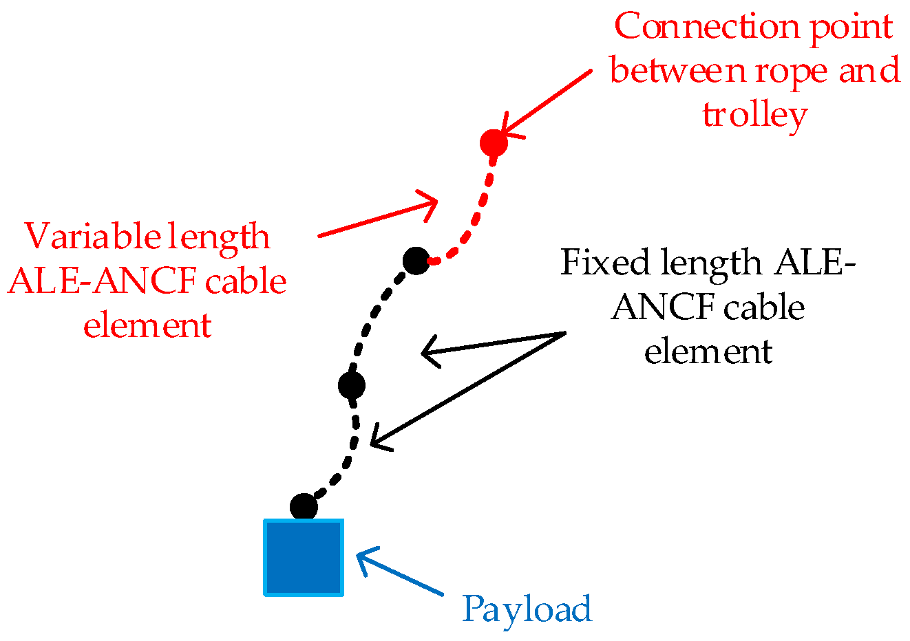 - Zhang, Y.; Guo, J.W.; Liu, Y.Q.; Wei, C. Absolute Nodal Coordinate Formulation-Based Decoupled-Stranded Model for Flexible Cables with Large Deformation. J. Comput. Nonlinear Dyn. 2021, 16, 031005. [Google Scholar] [CrossRef]