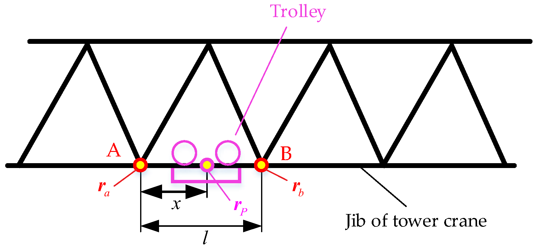 | , | the position of the trolley, wire rope’s endpoint |