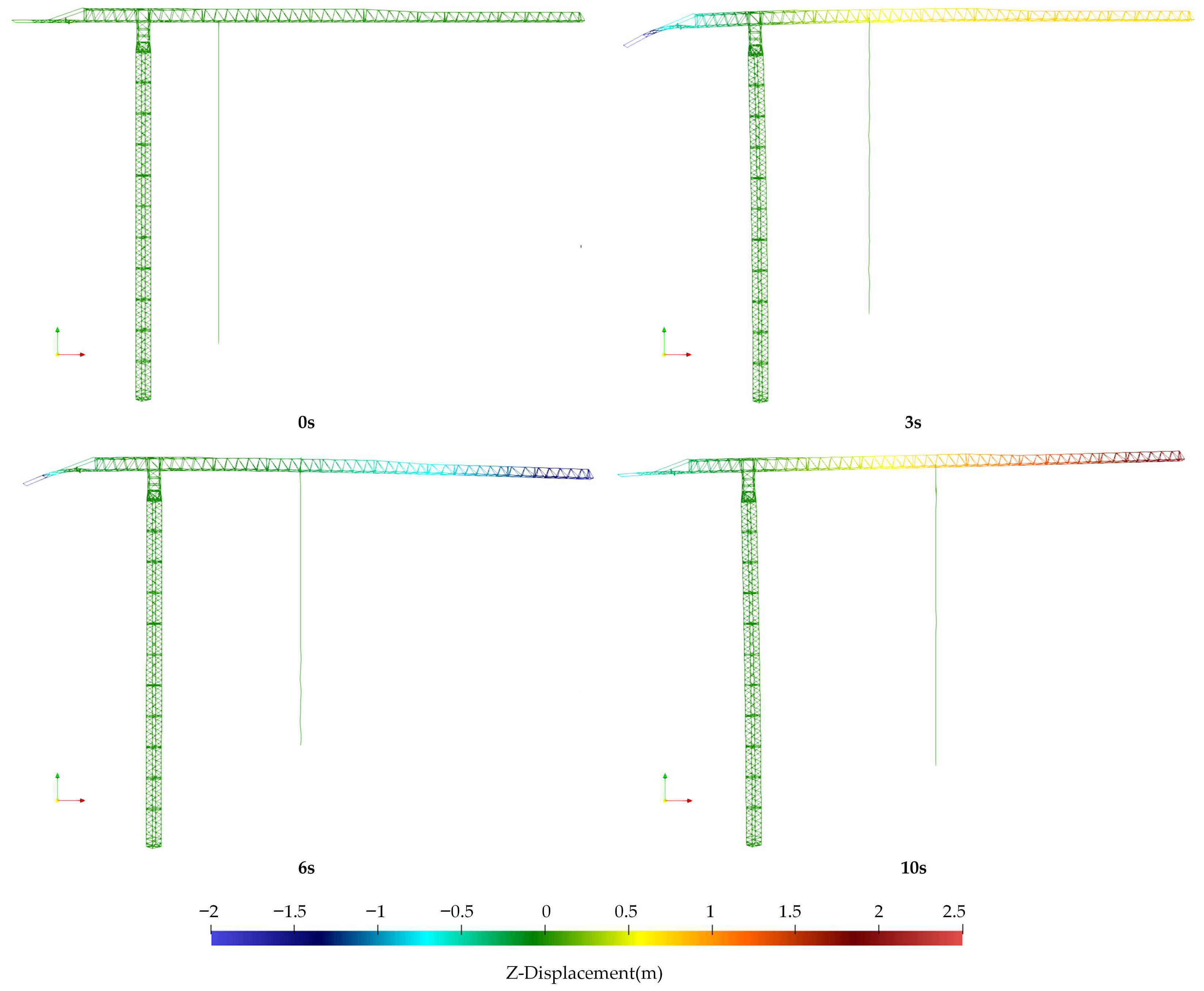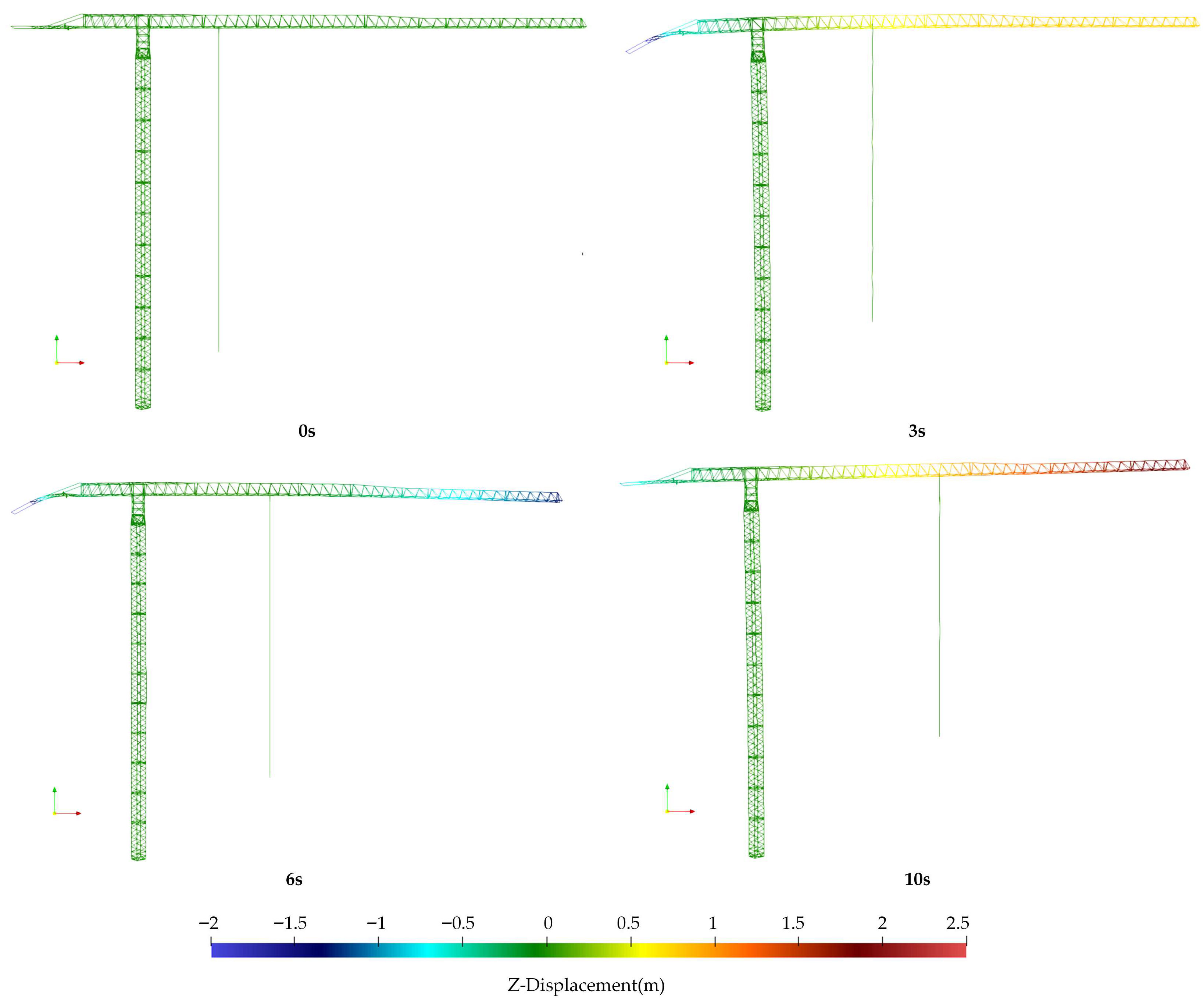 - Ju, F.; Choo, Y.S.; Cui, F.S. Dynamic response of tower crane induced by the pendulum motion of the payload. Int. J. Solids Struct. 2006, 43, 376–389. [Google Scholar] [CrossRef]