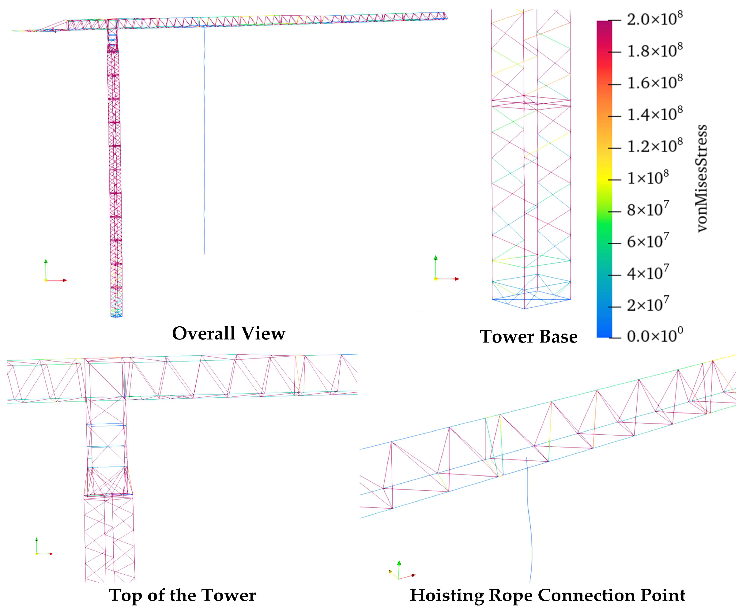 | Properties | Length of Jib (m) | Radius of Mast and Jib Section (mm) | Gravity Acceleration (m/s2) | Material |