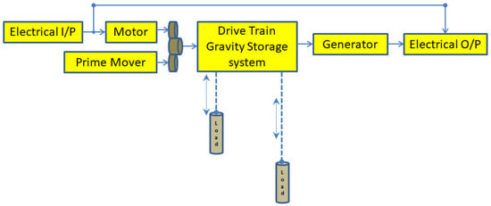 By 2050 the 70% of electricity demand will be contributed by renewable energy sources. Globally, the predominant factor for solving electrical problems is the strengthening of the energy storage system. The need for an efficient energy storage system is to fulfill the intermittency of the renewable energy system. Energy storage is vital for the reliability of the electrical grid system [], optimizing electrical energy distribution, and reducing the impact of global warming through fossil fuels. The electrical energy storage in terms of electrochemical systems dominates the overall energy storage market. Other storage systems have limitations like geographical and environmental conditions, scalability, upfront cost, deployment, and other factors. The gravity energy storage system is one of the alternative energy storage systems [], by utilizing the gravitational field impact on the potential energy of the stack weight []. These systems store the surplus energy by hoisting the stack weight and generate electricity by releasing the stack weight. The stack weight moves downwards due to the vital action of the Earth’s gravitational field, with low environmental footprints and utilization of natural resources. This renewable energy storage system is the sustainable optimal choice for storing longer-duration energy systems [].