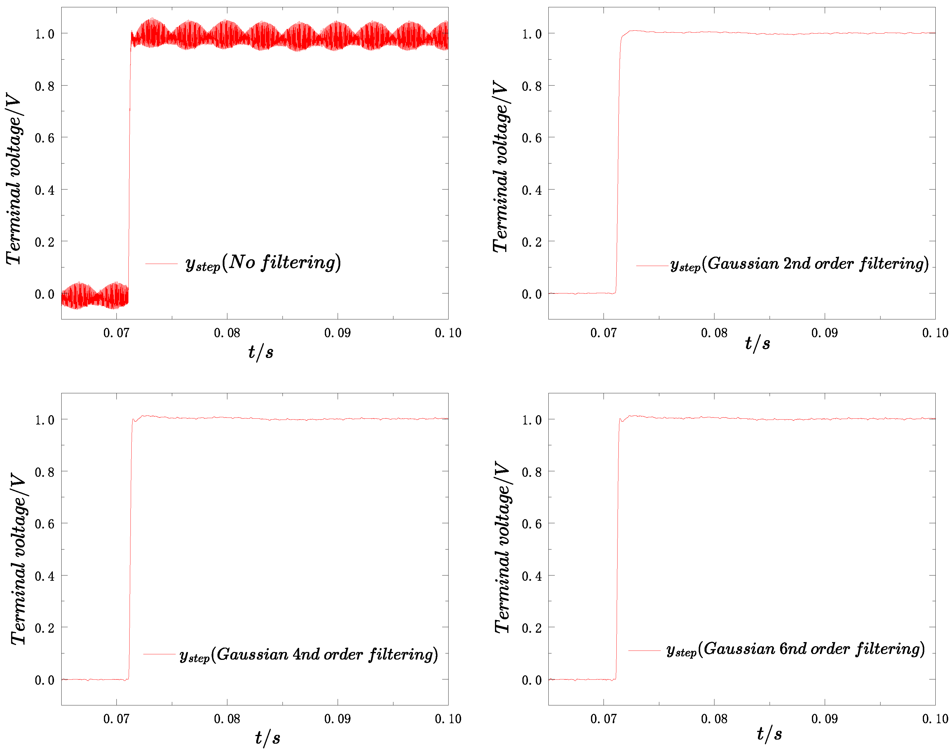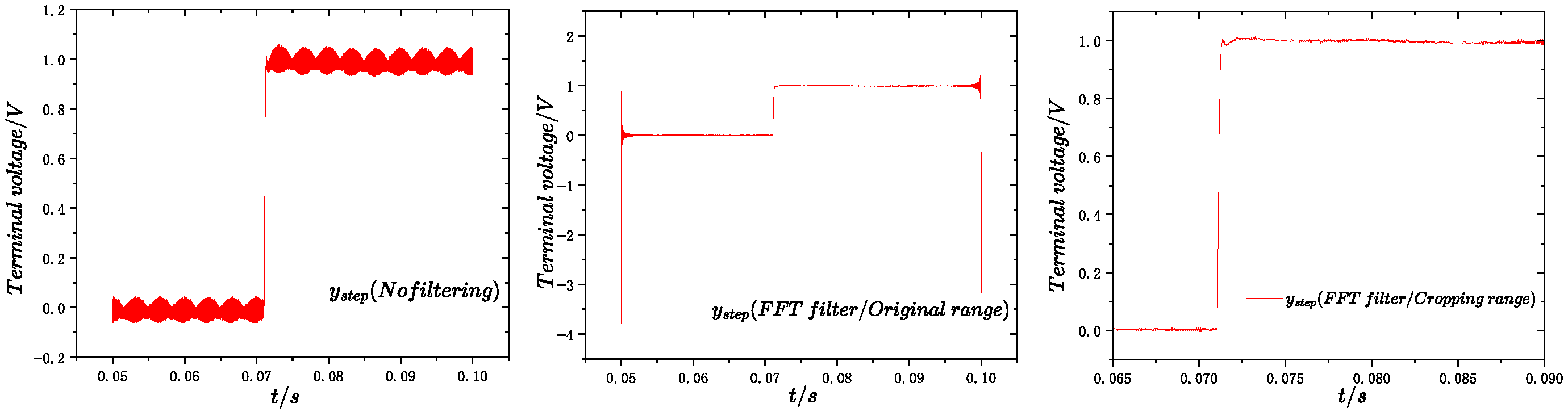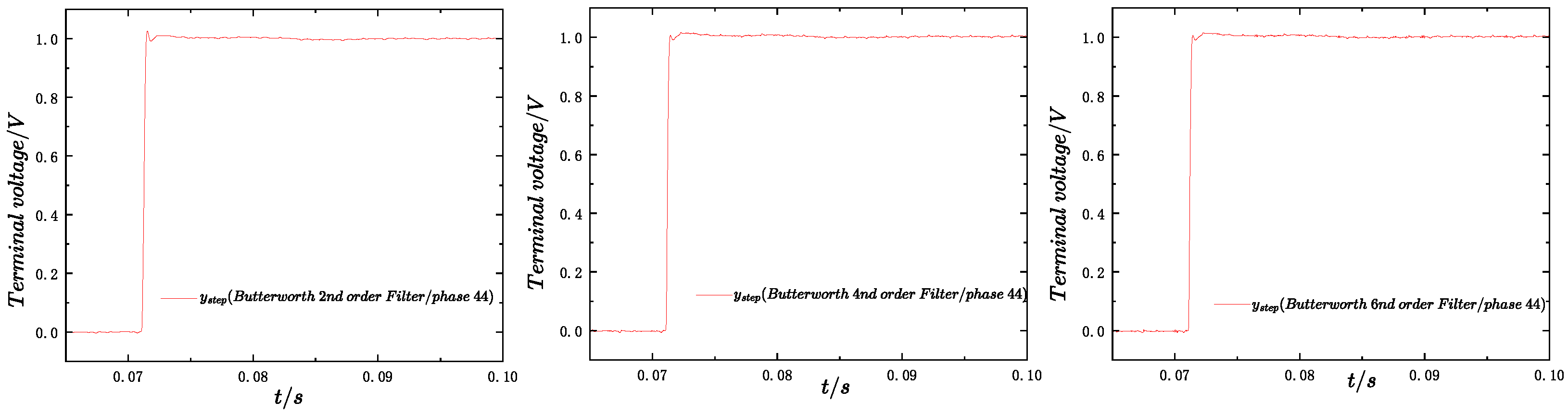 45]. To avoid aliasing distortion in digital filtering, oversampling is required before filtering. In this study, an 8× oversampling rate is adopted to ensure alias-free signal acquisition. Additionally, selecting a sampling phase with reduced harmonic components further enhances the filtering performance. For analog filtering, downsampling must be performed after filtering to ensure complete suppression of ripple. Similarly, an appropriate sampling phase with low harmonic content is selected to optimize the filtering effect. Through these measures, both digital and analog filtering approaches are capable of generating a ripple-free and distortion-free step reference waveform, which serves as a reliable foundation for subsequent controller parameter optimization.