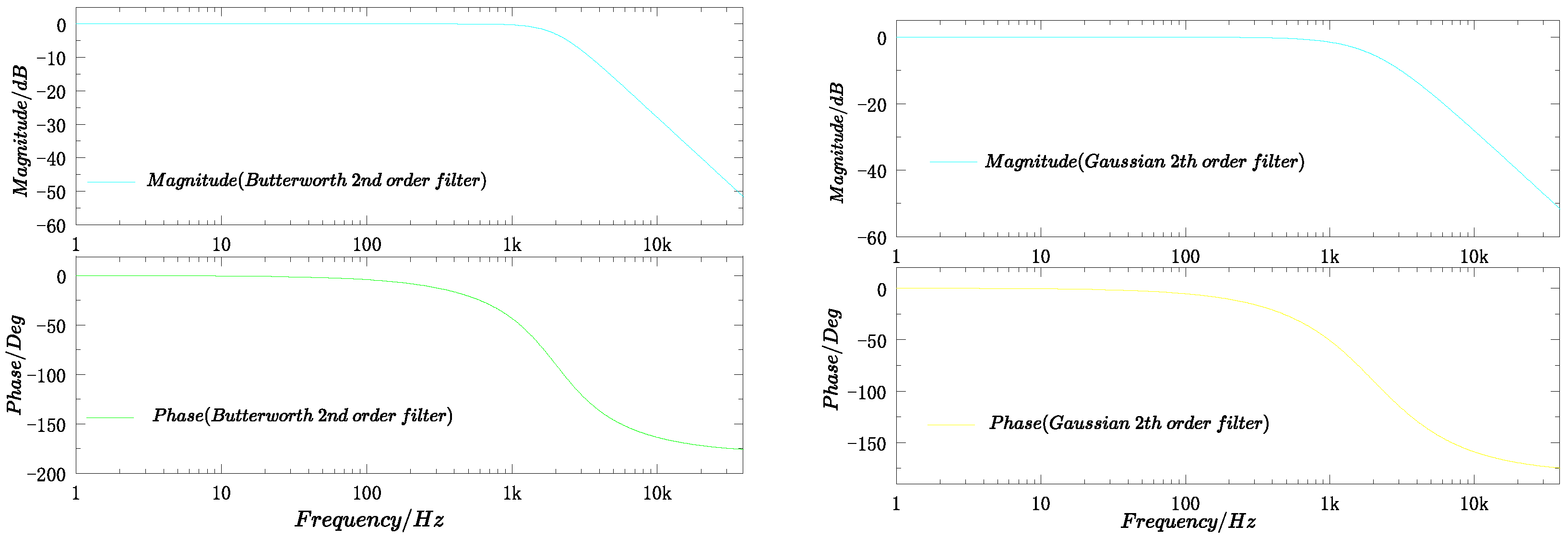 Figure 16 provides the amplitude and phase response curves for the implemented Butterworth and Gaussian filters.