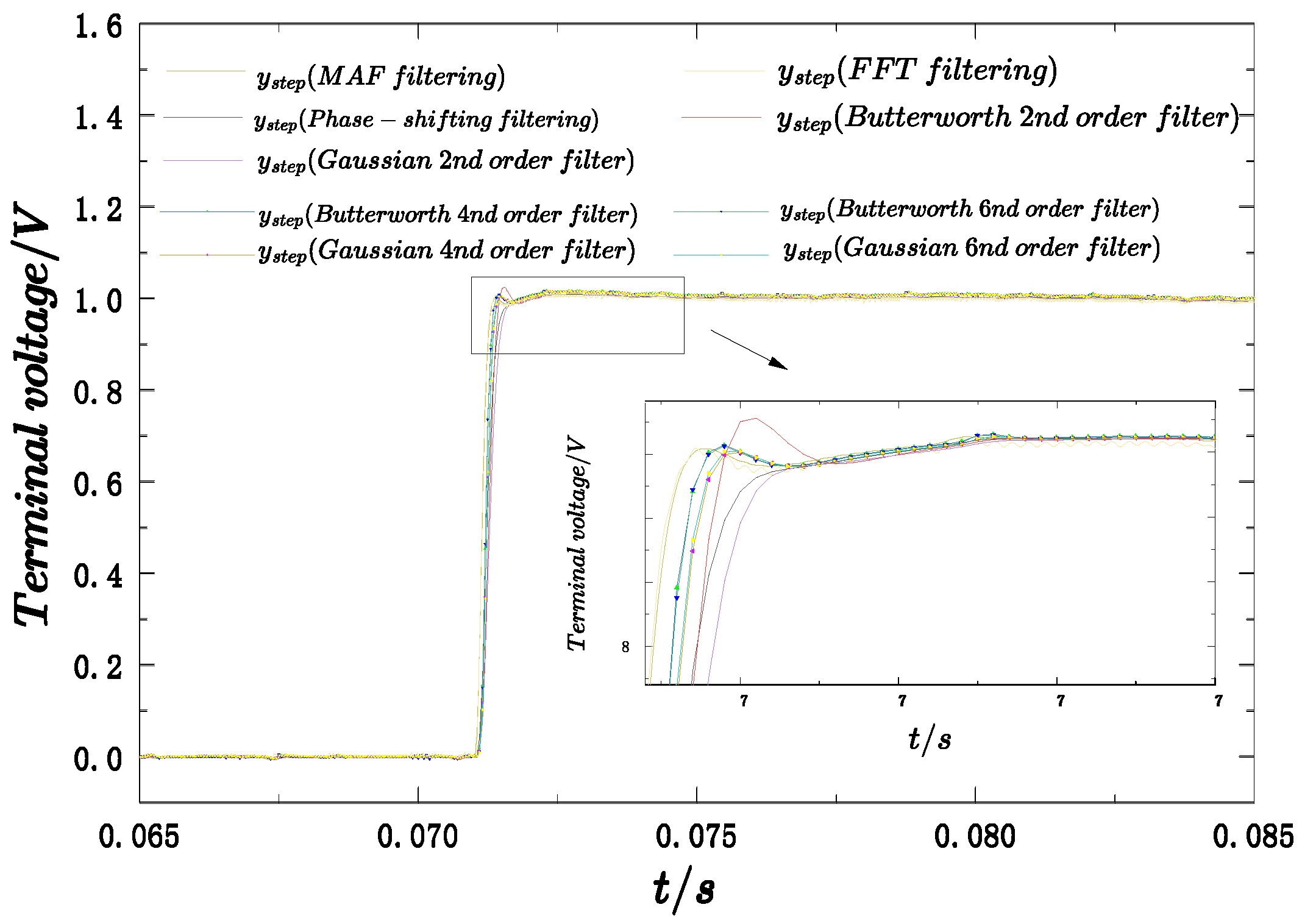 The FFT analysis is performed using 8000 sampling points within a 0–0.01 s acquisition window. An oversampling factor of 8× or 16× is applied for the moving-average and other digital filtering methods. It should be noted that FFT-based filtering is used solely as an offline benchmark for evaluating dynamic-response fidelity and is not intended for online implementation. Other digital filtering approaches are compared against the FFT results to identify which method best approximates the high-fidelity step response while remaining suitable for real-time application.