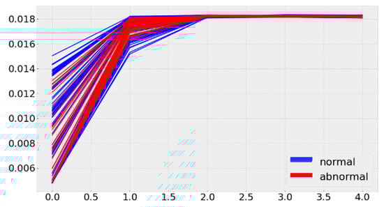 In the context of real manufacturing systems, the presence of labeled fault data is infrequent due to the sporadic nature of failures and the associated costs or impracticalities of accurately annotating such data []. As illustrated in Figure 1, normal time-series signals often exhibit tightly aligned temporal patterns, whereas abnormal sequences deviate subtly and inconsistently, making unsupervised anomaly detection particularly challenging. Consequently, supervised approaches encounter challenges in extending their generalization beyond the observed failure modes. Statistical process control (SPC) methods are widely employed; however, they frequently encounter failure under dynamic operating conditions, sensor noise, or drifting baselines. These factors contribute to the indistinct delineation between normal and abnormal behaviors []. These limitations have thus motivated an increased interest in unsupervised and self-supervised time-series anomaly detection (TSAD), wherein models are tasked with learning intrinsic temporal structure from unlabeled data. Despite recent advances, several unresolved problems remain in unsupervised industrial TSAD: (i) existing augmentations often distort periodic and seasonal temporal structures; (ii) one-class boundaries are prone to collapse when trained without negative samples; and (iii) many SSL-based approaches provide invariance but lack explicit mechanisms for compact normal-region formation. These gaps motivate the need for a unified framework that preserves temporal structure, stabilizes boundary formation, and prevents latent collapse.