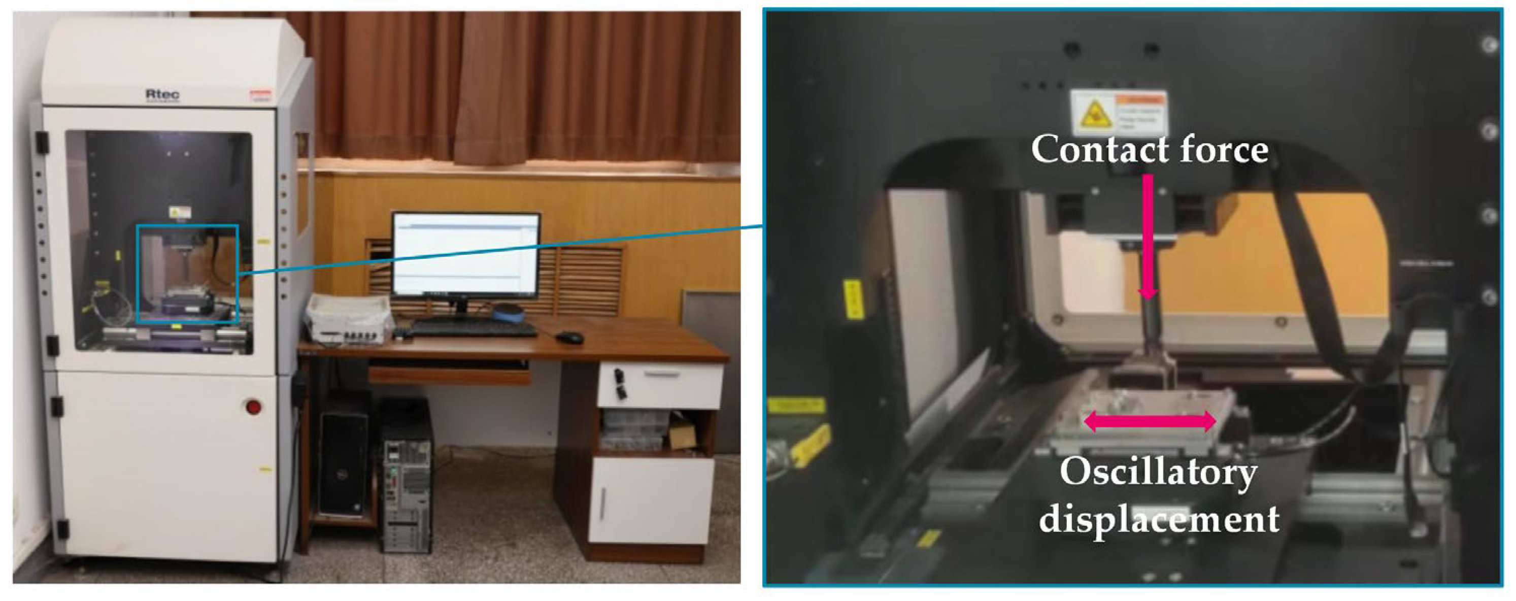 Figure 1. MFT-5000 friction and wear tester and its fretting module.