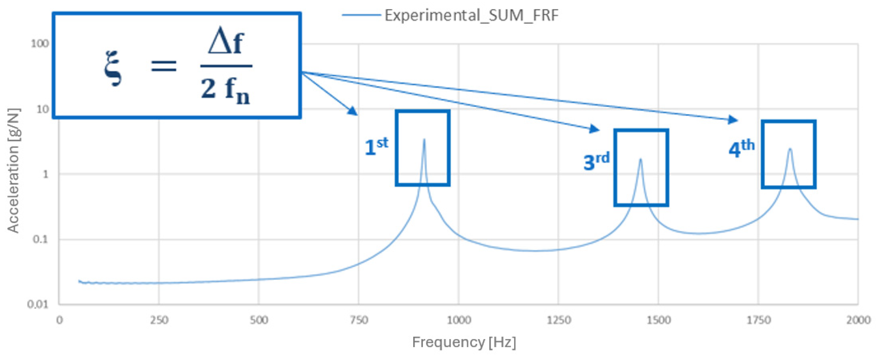 - Irvine, T. The half power bandwidth method for damping calculation. Vibrationdata 2005, 1–8. Available online: https://www.vibrationdata.com/tutorials2/half_power_bandwidth.pdf (accessed on 26 November 2025).
