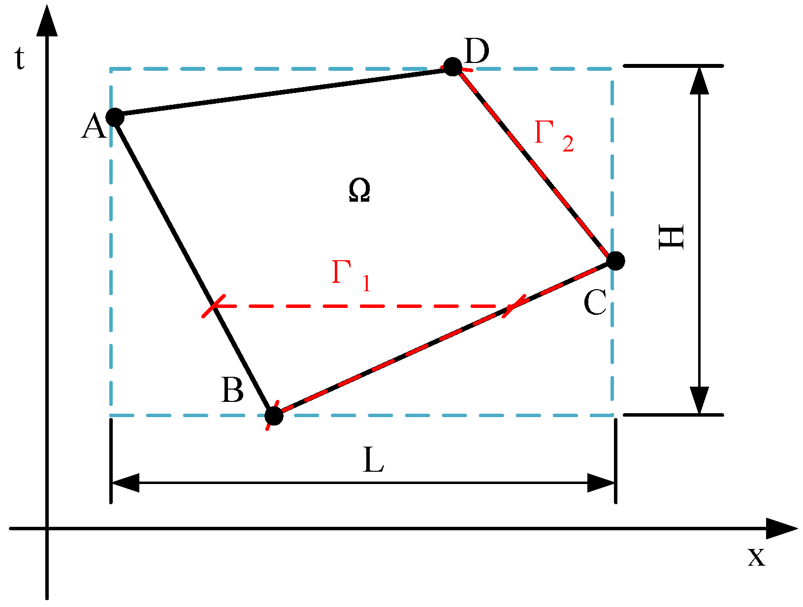 In practice, it is found that the shape function constructed by this method requires that its two diagonals should not be parallel to the x-axis and t-axis at the same time, which causes singularity in matrix