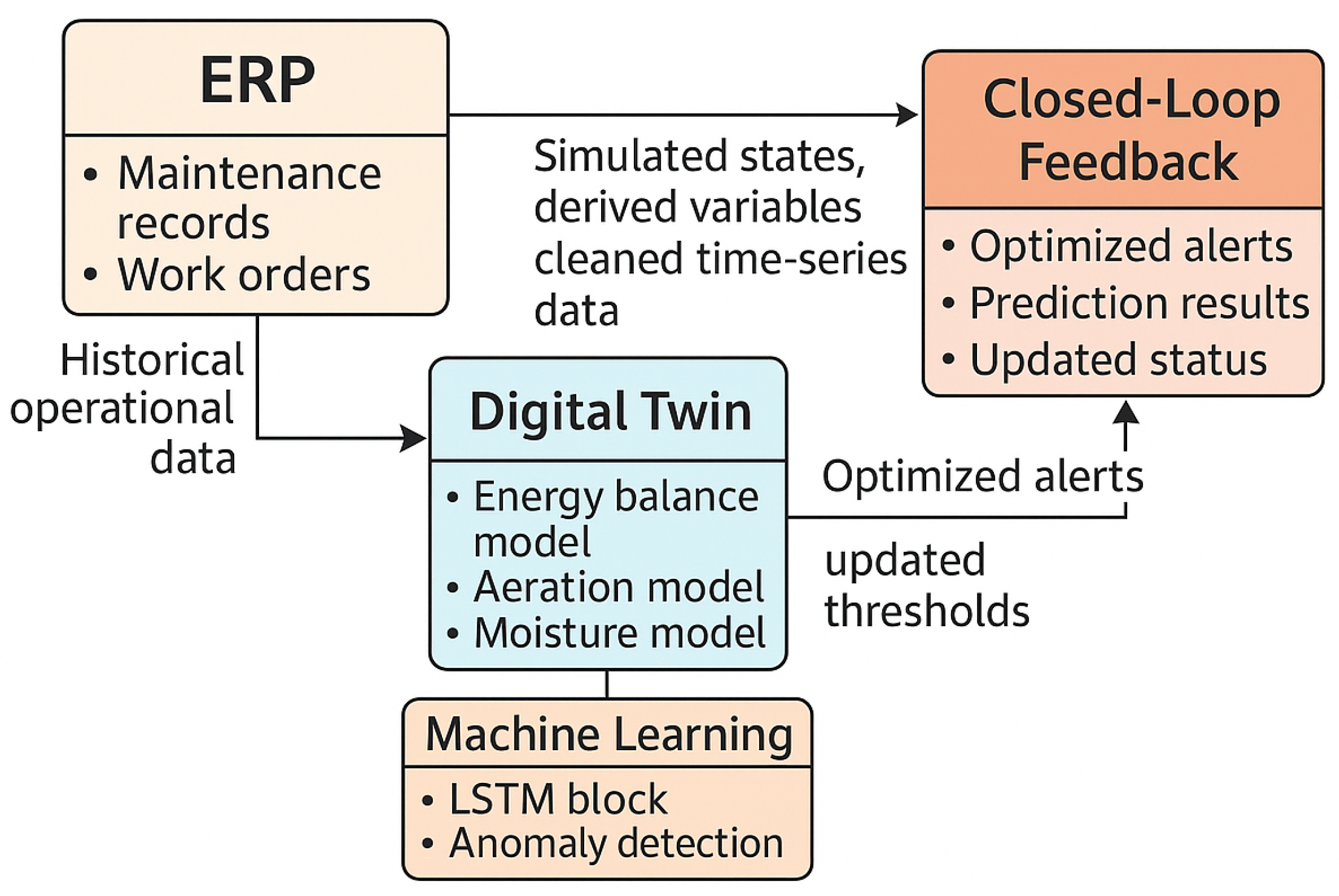 - Providing an integrated DT–ERP–PdM architecture that enables two-way interaction between the physical model, deep learning, and operational decision-making.