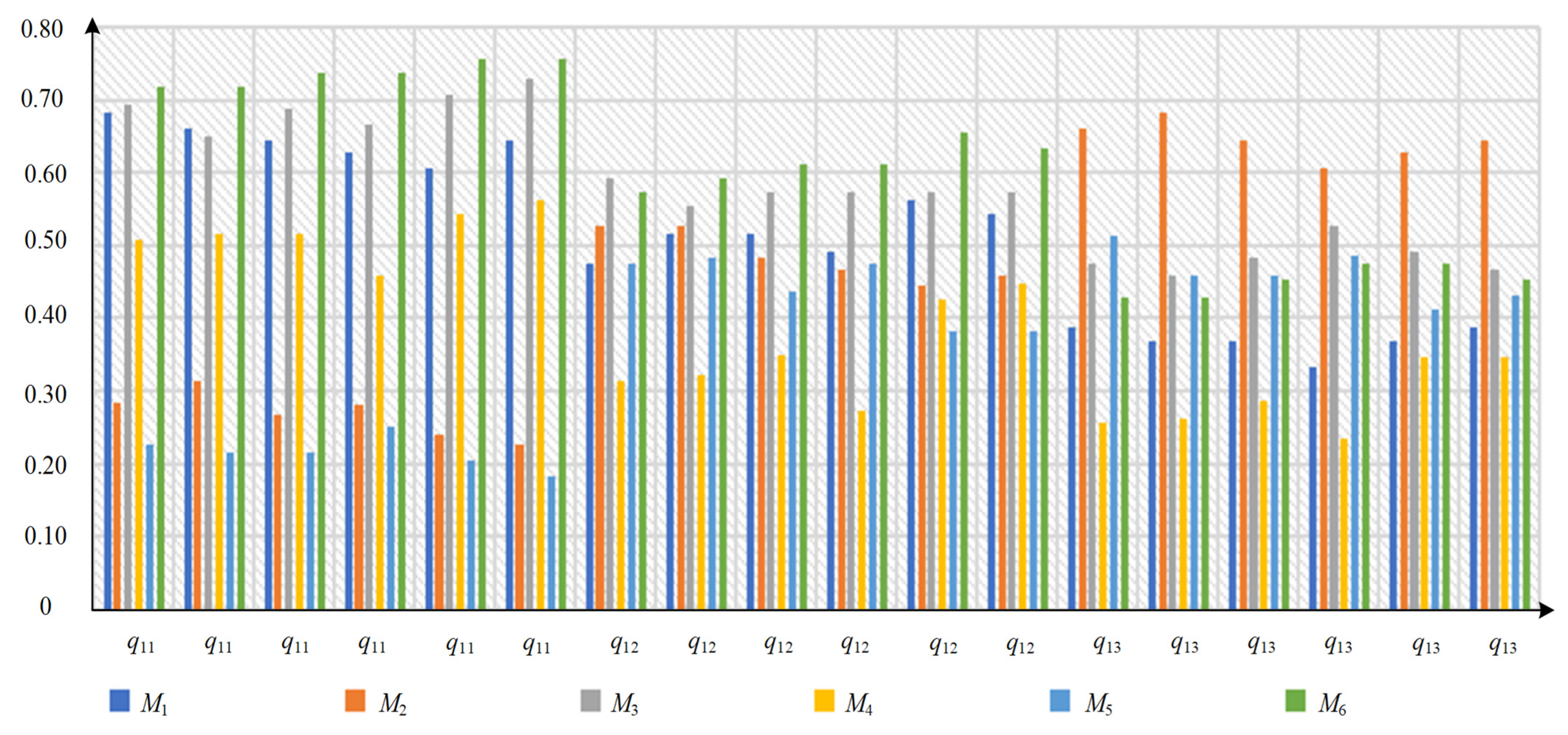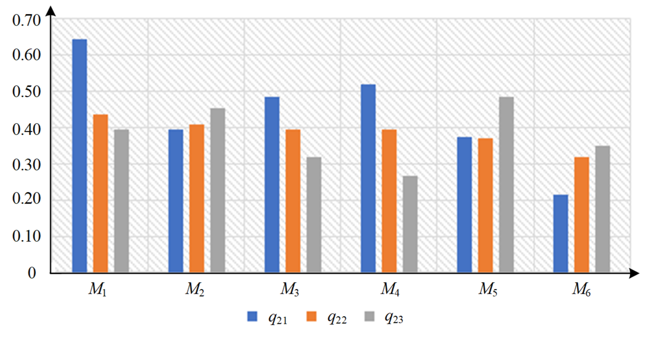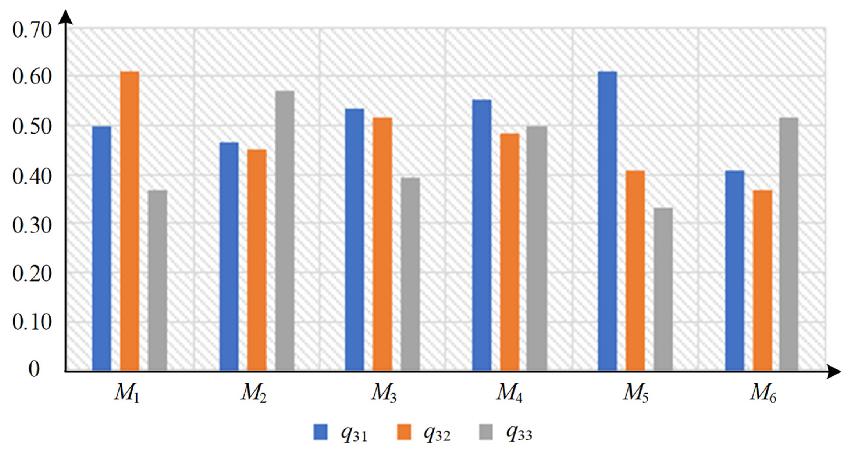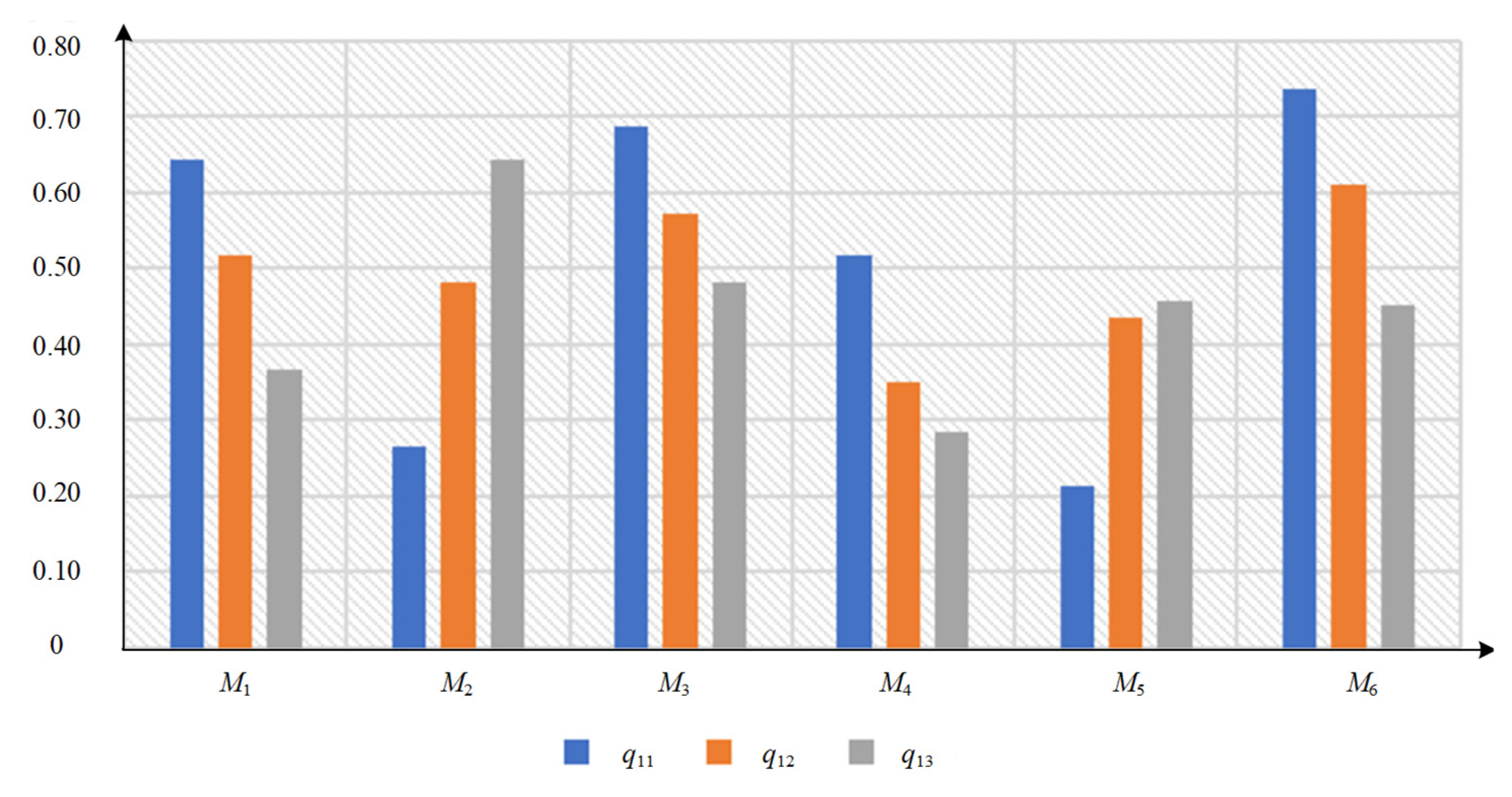 | 1 (0.1 0.2 0.3 0.1 0.3) | q11 | 0.682 | 0.283 | 0.694 | 0.508 | 0.225 | 0.718 |