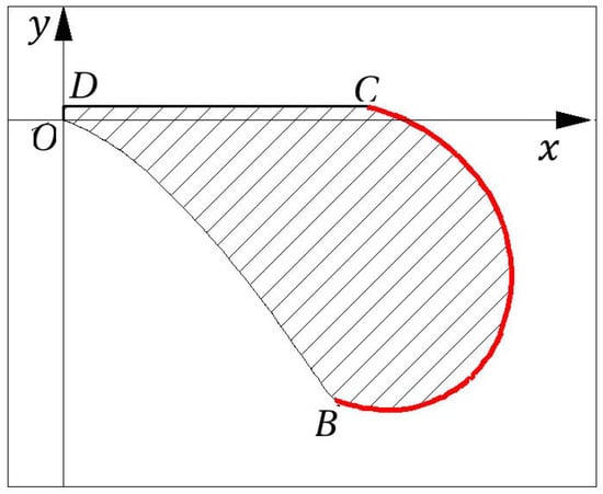 This section provides a detailed geometric description of the blade’s surface profile in a cross-flow turbine, focusing on the curved segment denoted as (Figure 1). This segment is of particular interest because its curvature strongly affects the efficiency of energy transfer within the turbine.