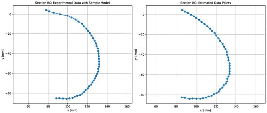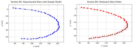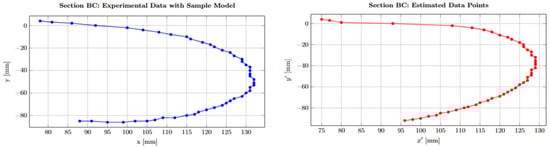 By substituting the regression model (18) into the arc-length formulation (17), the computed arc length of section was approximately , closely matching the reference measurement of and achieving a precision of 98.79%. This result was obtained using a five-point Gauss–Legendre quadrature, ensuring both numerical accuracy and computational efficiency.