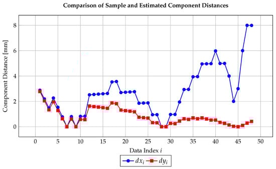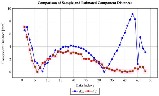 Distance between sample and estimated values for each component (Cartesian coordinates).