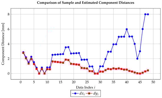 Further support is provided by Figure 6, which plots the Euclidean distance between the Cartesian coordinates of the reference points and the model estimates. The residuals remain consistently small across all points, with no significant outliers or systematic trends. This confirms the stability of the three-parameter regression model and its potential application in quality control or design optimization contexts.