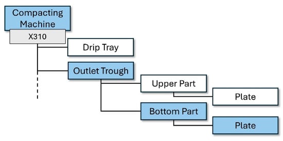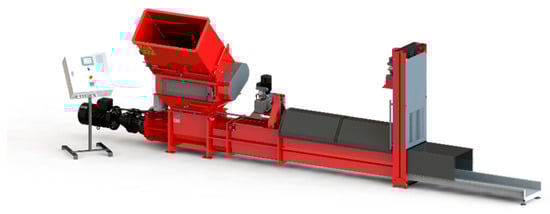 The proposed methodology was implemented in a company operating in the waste management sector, specializing in the design and manufacture of heavy machinery for waste compaction and dewatering. Following several years of growth, the company sought deeper insight into its product portfolio performance, internal variety, and related cost implications. Its main products are mechanical waste compactors, supported by accessory equipment such as silos, shredders, and conveyors. In operation, waste materials (e.g., expanded polystyrene (EPS), plastic bottles, paint buckets, etc.) are shredded and compressed to reduce volume, remove moisture, or separate liquids from solids, enhancing recyclability, lowering transport costs, and improving waste handling efficiency. The company’s machinery follows a partly modular architecture, sharing core elements across multiple application areas. It employs both CTO and MTS production strategies: low-capacity EPS machines are produced to stock, while higher-capacity models rely on modular subassemblies to maintain flexibility and short lead times. Customization typically occurs in design units such as the hopper, shredder, and outlet, which are adapted to customer-specific requirements. An EPS compactor is illustrated in Figure 4.