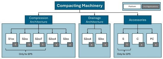 Two main product architectures define the portfolio, one for material compression and one for drainage, distinguished primarily by their outlet design. Each architecture encompasses several product platforms, some of which are shared across architectures, contributing to increased internal variety when existing solutions are adapted to new applications. Accessory products are offered separately to support integration into customer production lines. A hierarchy of the product platforms and architectures is shown in Figure 5.