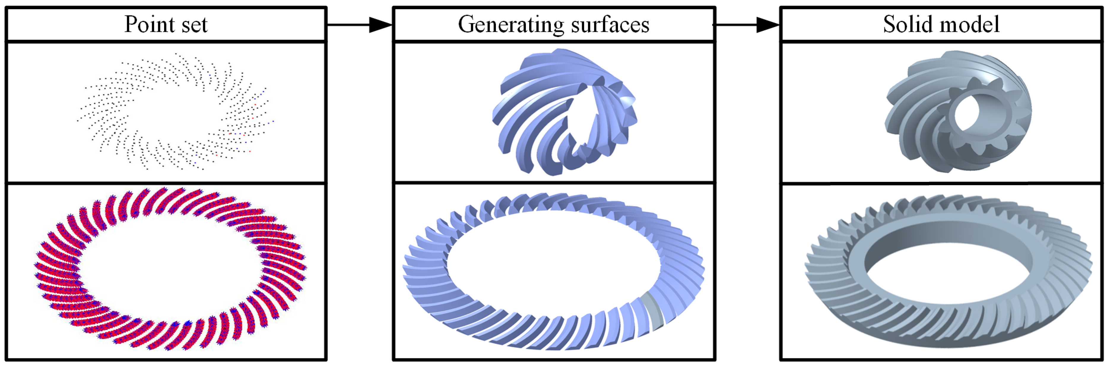 - Zhou, L.; Fan, S.; Liu, Y.; Li, Y.; Taguchi, T.; Takeda, R. An alignment angle error compensation method of spiral bevel gear tooth surface measurement based on tooth surface matching. Meas. Sci. Technol. 2021, 32, 105020. [Google Scholar] [CrossRef]