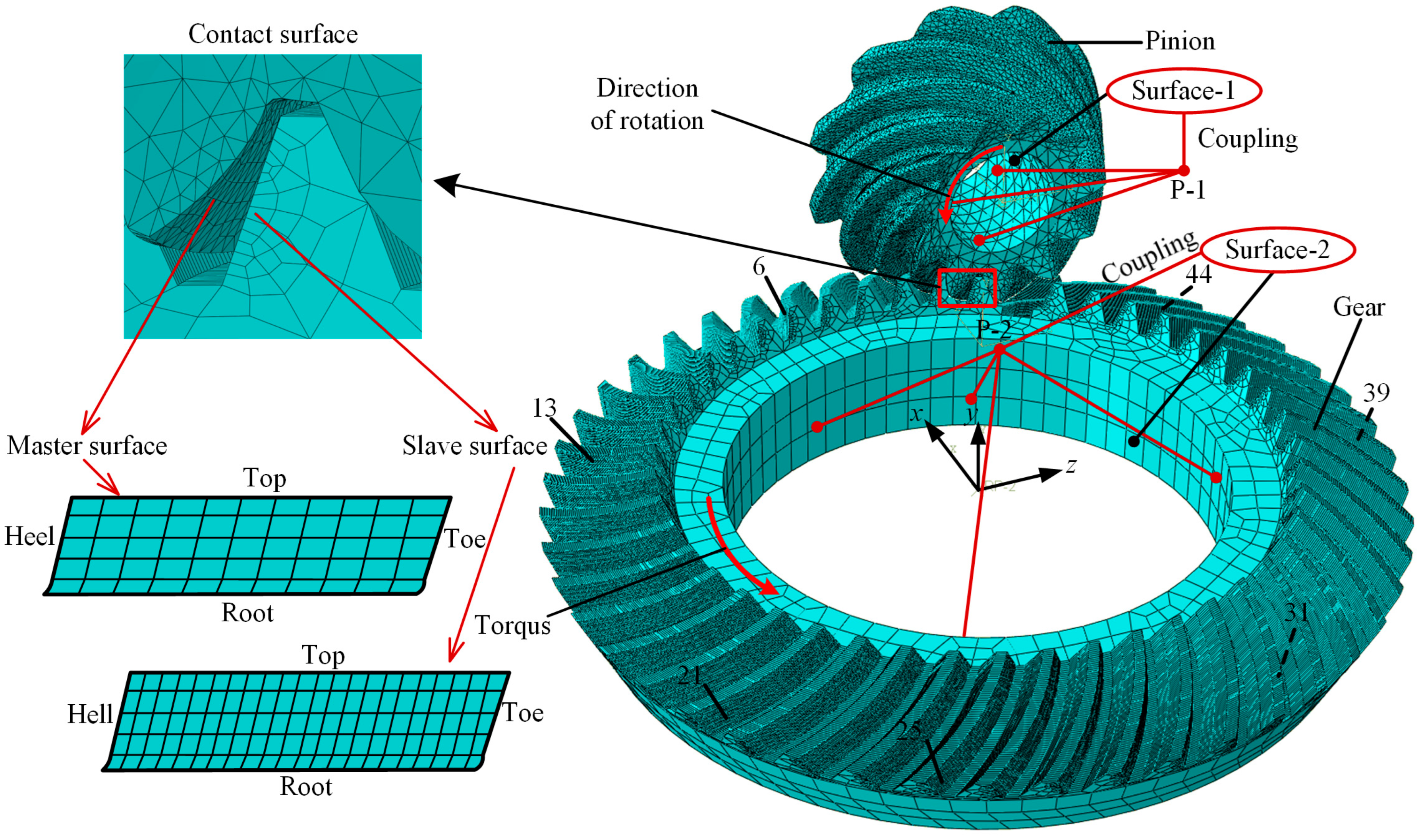 - Li, Q.; Xie, L. Analysis and Optimization of tooth surface contact stress of gears with tooth profile deviations, meshing errors and lead crowning modifications based on finite element method and Taguchi method. Metals 2020, 10, 1370–1395. [Google Scholar] [CrossRef]