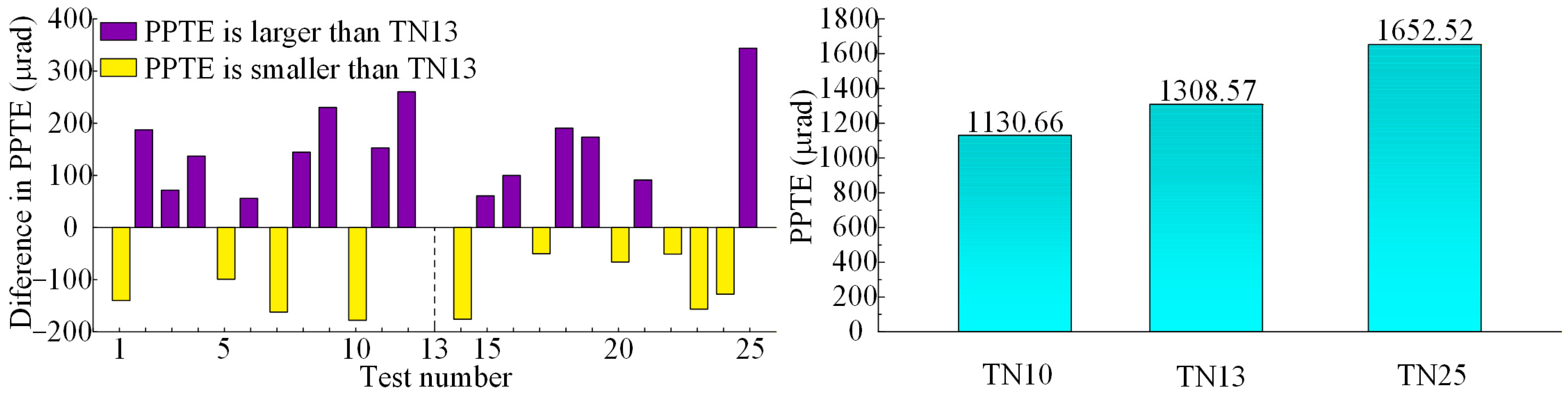 | Parameters | Mean Values of PPTE (μrad) | Range (μrad) |