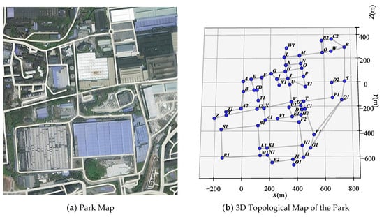 This study utilizes Global Navigation Satellite System (GNSS) and Real-Time Kinematic (RTK) technologies to obtain high-precision positioning data, specifically longitude, latitude, and altitude, for road nodes within the park environment. These geodetic coordinates are converted into a global coordinate system to construct a 3D topological map. Subsequently, integrated with the vehicle energy consumption model, this framework enables the establishment of an energy consumption matrix for the park road network.