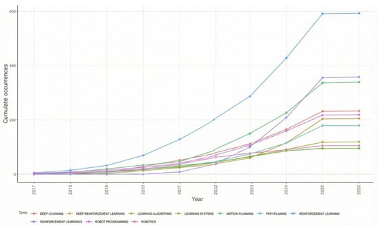 The accelerating integration of Artificial Intelligence (AI) in Industrial Automation has established Reinforcement Learning (RL) as a transformative paradigm for adaptive control, intelligent optimization, and autonomous decision-making in smart factories. Despite the growing literature, existing reviews often emphasize algorithmic performance or domain-specific applications, neglecting broader links between methodological evolution, technological maturity, and industrial readiness. To address this gap, this study presents a bibliometric review mapping the development of RL and Deep Reinforcement Learning (DRL) research in Industrial Automation and robotics. Following the PRISMA 2020 protocol to guide the data collection procedures and inclusion criteria, 672 peer-reviewed journal articles published between 2017 and 2026 were retrieved from Scopus, ensuring high-quality, interdisciplinary coverage. Quantitative bibliometric analyses were conducted in R using Bibliometrix and Biblioshiny, including co-authorship, co-citation, keyword co-occurrence, and thematic network analyses, to reveal collaboration patterns, influential works, and emerging research trends. Results indicate that 42% of studies employed DRL, 27% focused on Multi-Agent RL (MARL), and 31% relied on classical RL, with applications concentrated in robotic control (33%), process optimization (28%), and predictive maintenance (19%). However, only 22% of the studies reported real-world or pilot implementations, highlighting persistent challenges in scalability, safety validation, interpretability, and deployment readiness. By integrating a review with bibliometric mapping, this study provides a comprehensive taxonomy and a strategic roadmap linking theoretical RL research with practical industrial applications. This roadmap is structured across four critical dimensions: (1) Algorithmic Development (e.g., safe, explainable, and data-efficient RL), (2) Integration Technologies (e.g., digital twins and IoT), (3) Validation Maturity (from simulation to real-world pilots), and (4) Human-Centricity (addressing trust, collaboration, and workforce transition). These insights can guide researchers, engineers, and policymakers in developing scalable, safe, and human-centric RL solutions, prioritizing research directions, and informing the implementation of Industry 5.0–aligned intelligent automation systems emphasizing transparency, sustainability, and operational resilience.