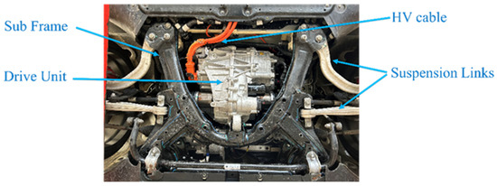 Table 1 and Figure 3 denote the test vehicle specifications and components; all of the parameters were identified based on the test vehicle component tags, the official website, and from the EV database [11,12,13].