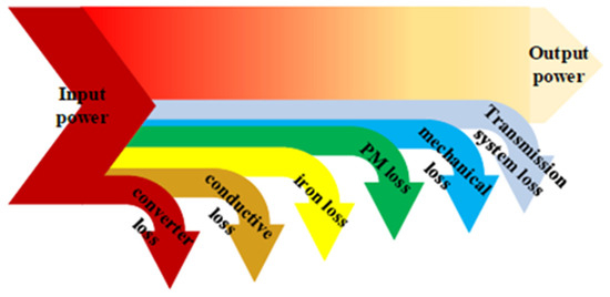These loses include the switching and conduction losses of the inverter. is the input for the motor. Considering the copper, iron, friction, and permanent magnet losses of the motor, the mechanical output of the motor can be written as