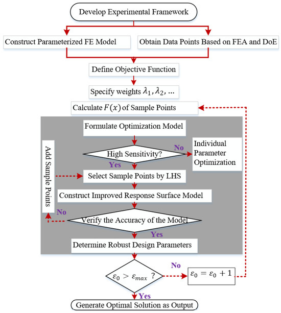 Design: A robust optimization process integrates the RSM to approximate performance metrics efficiently under varying conditions. The objective function incorporates uncertainties using Taguchi’s Loss Function [