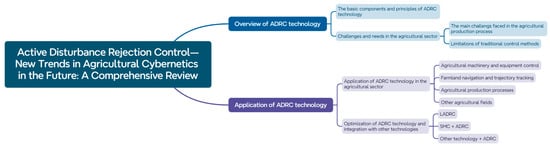 The structure of this paper is as follows as in Figure 2: Section 2 provides an overview of ADRC, briefly reviewing its fundamental components and principles, including the Tracking Differentiator (TD), Extended State Observer (ESO), and Nonlinear State Error Feedback (NLSEF). It also introduces the second-order system as an example to explain these concepts and discusses the current challenges and issues faced by ADRC in agricultural applications; Section 3 presents a detailed review of the current applications of ADRC in agriculture, encompassing the control of agricultural machinery and equipment, field navigation and trajectory tracking, agricultural production processes, and various agricultural scenarios such as aquaculture and greenhouse management; Section 4 reviews the application of optimized ADRC technologies (such as LADRC) and the integration of ADRC with other techniques (such as SMC) in the agricultural field, summarizing the respective advantages of each; Section 5 offers a summary and discussion of the strengths and weaknesses of ADRC in agricultural applications, while also providing some useful suggestions to address the existing shortcomings, offering insights for future research directions; Section 6 concludes with a review and summary of the entire paper.