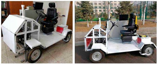 To address the complex environments of grassland and enhance the efficiency and quality of pneumatic seeders while improving their automation and precision, Chen [74] developed a kinematic model for the walking system and steering mechanism of a pneumatic seeder based on ADRC. A steering controller and path tracker were designed, and the impact of grassland terrain on seeding quality and automatic control was analyzed. The physical implementation of this research is shown in Figure 7. Field trials demonstrated that the ADRC could reduce steering adjustment time to within 2 s and achieve steering accuracy within 1°, outperforming traditional PID, and, thus, significantly improving seeding accuracy and quality.