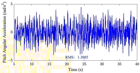 The angular acceleration of the vehicle’s center of mass, initially spanning −4.20 to 4.48 , was constrained to a narrower range of −4.05 to 3.95 . This reduction signifies improved vehicle stability with minimized pitching and swaying motions. The angular acceleration was reduced by 4.93%, reflecting enhanced dynamic stability (Figure 18).