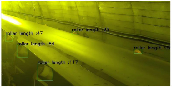 The comparative experimental results fully validate the detection performance of the proposed GES-YOLO model in the complex underground coal mine environment and confirm its effectiveness in practical application scenarios. Figure 8 illustrates the detection performance of the GES-YOLO model based on the belt conveyor operation monitoring video from Yinhe Coal Mine. As shown in the figure, the GES-YOLO model accurately identifies belt conveyor rollers, calculates their distance to the conveyor belt edge, and determines misalignment based on a predefined threshold, ensuring safe and efficient mining operations.