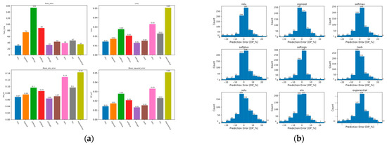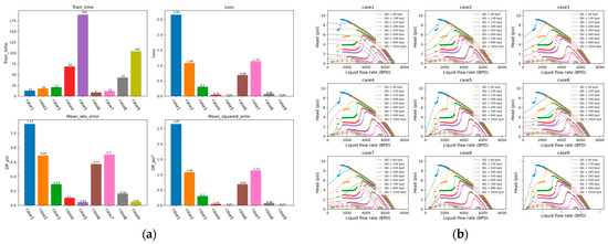 Figure 11 presents an error heatmap alongside training performance metrics, including the convergence time, loss, mean absolute error (MAE), and mean squared error (MSE), which were used to evaluate the accuracy of each activation function. Among the models, the FNNs with the softsign, relu, and tanh activation functions ranked as the top three performers in predicting the ESP gas–liquid performance. These models achieved relatively faster training times while maintaining lower losses.