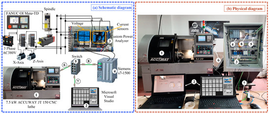 The system components that can perform real-time power measurements under variable frequencies and characterize the energy consumed during the cutting process according to the type of work performed are described in this section. System components consist of two main parts: a custom power analyzer and a data visualization interface. The components of the designed system are shown in Figure 6.