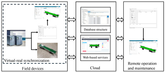 The key technologies of DTRS are embodied in four levels of virtual commissioning: virtual simulation, software/hardware-in-the-loop virtual commissioning, virtual–real synchronization, and cloud–end interconnection. In terms of the difficulty of technical implementation, virtual simulation, and software/hardware-in-the-loop virtual commissioning are relatively more straightforward. Therefore, this paper will make a more detailed demonstration of virtual–real synchronization and cloud–end interconnection levels.