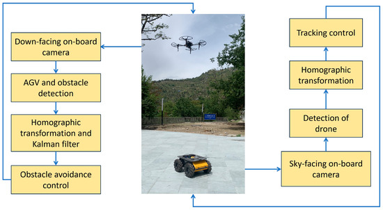 - A heading control strategy for the AGV, which ensures the direction of motion of the AGV is always towards the projection center of the UAV on the ground plane, is proposed.