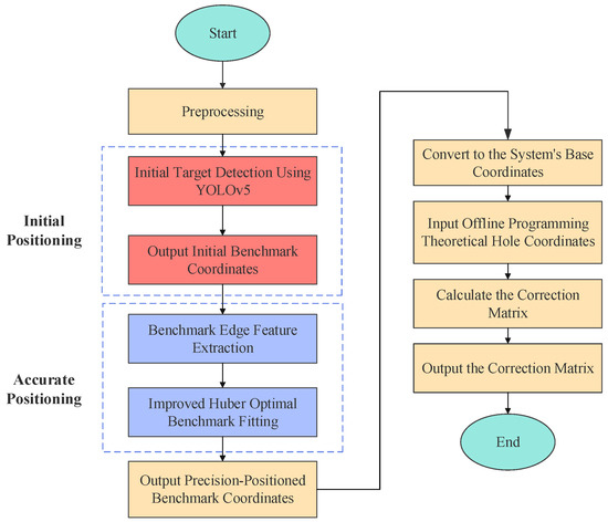 Accurate benchmark feature recognition is crucial for error compensation. Any recognition error propagates through the system, impacting compensation [7]. Precise detection ensures consistent global positioning, even with movement-induced errors [8]. It enables real-time local error compensation and stabilizes the system against environmental fluctuations [9], thus improving overall drilling accuracy.