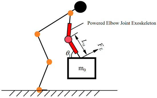 According to Equation (6), it is evident that when lifting heavy objects, the force exerted by the elbow flexor is primarily associated with the mass of the object and the angle between the forearm and the horizontal plane during the lifting process. It can be observed that the greater the value of m0 and the smaller the value of θ1, the greater the force required from the elbow flexor.