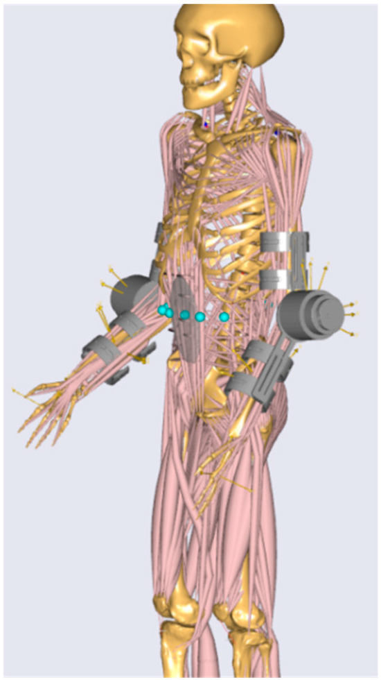The AnyBody Modeling System is a sophisticated software platform used for musculoskeletal modeling and simulation. It was specifically designed for biomechanics analysis. It enables the creation of comprehensive musculoskeletal models of the human body and the simulation of internal loads, including muscle activity, muscle strength, and joint reactions [27]. This tool is primarily utilized to analyze the dynamics of the human body and the interactions between the human body and its environment, particularly in the context of human–computer interfaces [28].