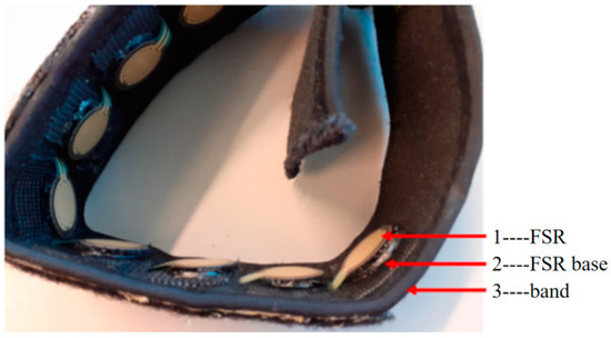 A sensor band from BioX ApS, Denmark, was adopted to detect human muscle contractions when generating limb motion. This sensor band was integrated with an array of 8 Force Sensitive Resistors (FSRs) and was placed on the biceps and triceps of the upper arm.