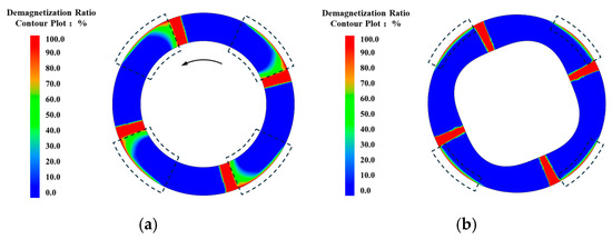 Comparison of demagnetization results in double load case: (a) original magnet ring, (b) modified magnet ring.