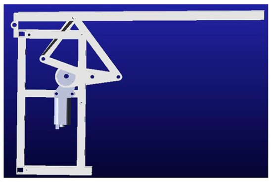 Based on the designed human leg lifting action mechanism, Creo 5.0 software was used to create a three-dimensional model of the entire mechanism, as shown in Figure 3.