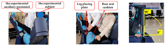The experimental model is shown in Figure 13, and the function of the leg lifting device was experimentally verified. The experimental process is as follows: the experimental subject sits on the experimental device, the legs are placed on the leg lifting device, the experimental auxiliary personnel controls the device to start and stop, and the experimental personnel carry out the leg stretching experiment. In the experimental verification part of the device prototype, it was still the original 20 experimental subjects. The average age of the experimental subjects was 27.6 years old, the standard deviation was 9.02, and the participants were healthy. Each experimental subject participated in the prototype experiment 3–5 times.